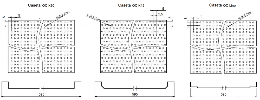 Pentru a asigura un control acustic optim în încăpere, casetele pot fi perforate. În calitate de funcție standard, casetele perforate sunt prevăzute cu un material nețesut fonoabsorbant, lipit pe suprafața interioară a casetei.