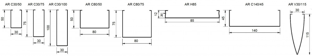 Панели могут поставляться любой длины от 1000 мм до 6000 мм, несущая направляющая (стрингер) имеет стандартную длину 4000 мм.