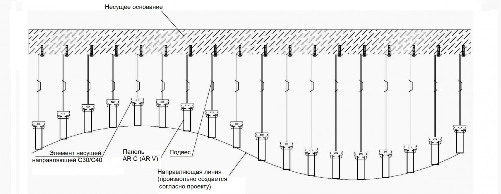 Ключевой особенностью этой системы является неограниченное сочетание различных панелей с различной глубины и ширины панелей в одном потолке.