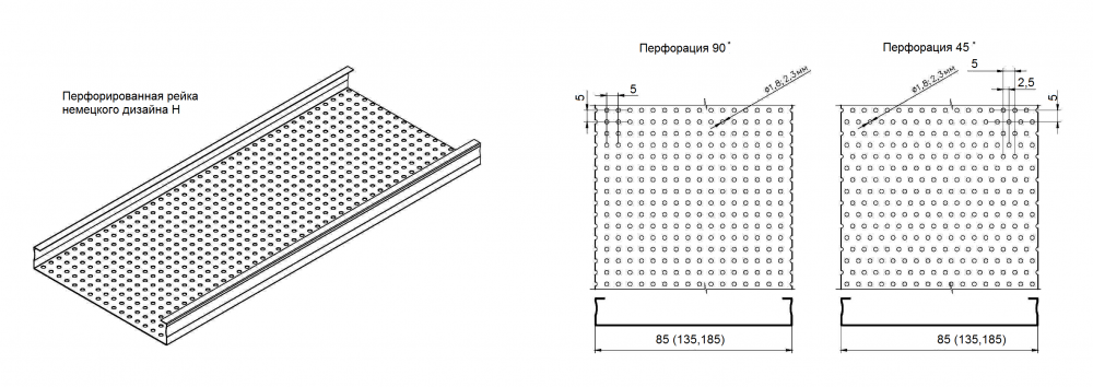Для того чтобы обеспечить оптимальный акустический контроль в помещениях, рейки могут быть перфорированными. В качестве стандартной функции, перфорированные рейки снабжены звукопоглощающим нетканым материалом наклеенным на внутренней поверхности рейки.