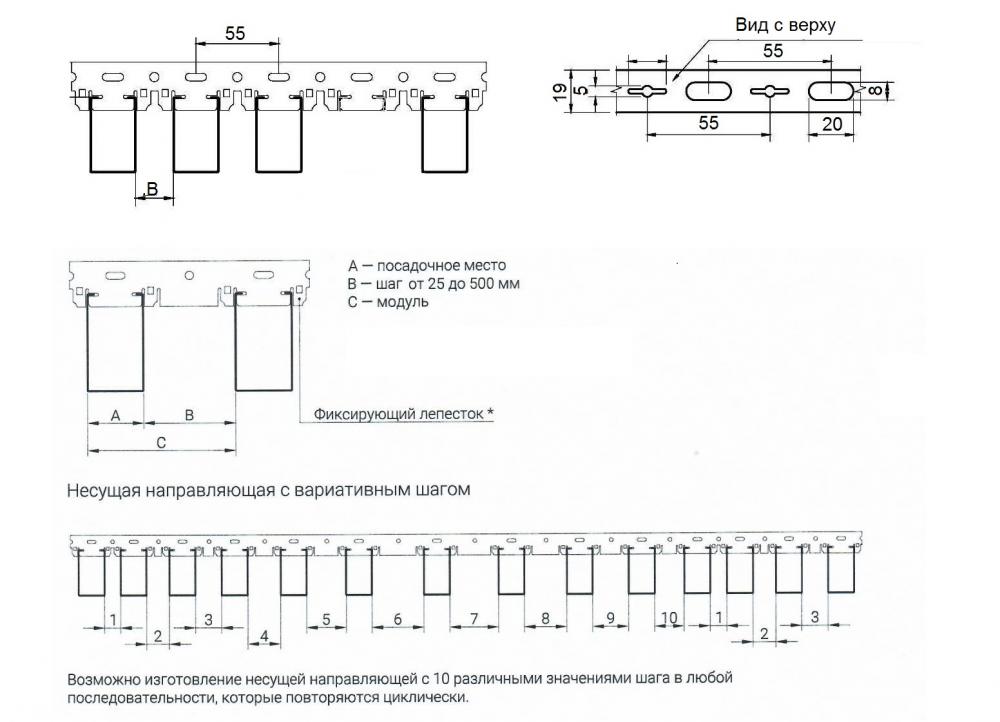 Панели могут поставляться любой длины от 1000 мм до 6000 мм, несущая направляющая (стрингер) имеет стандартную длину 4000 мм.